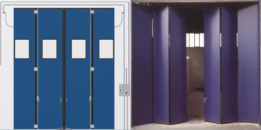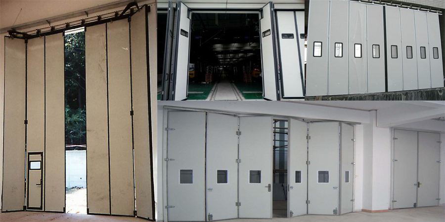 工業折疊門是用于機場、消防車庫、電廠、車間廠房、倉庫等地方的大門,常常在墻體洞口兩側和頂部空間位置不夠的情況下,獨特研制的一種新型門體。工業折疊門可分為四扇折疊,六扇折疊等多種形式,此門體有手動、電動、遙控多種運行方式,具有防沙塵、耐腐蝕等性能。
