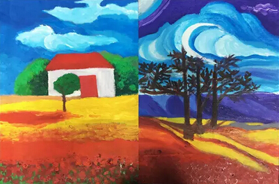 馬勺丙烯畫。小作者臨摹梵高的《星空》,星空、夜色如此迷人。