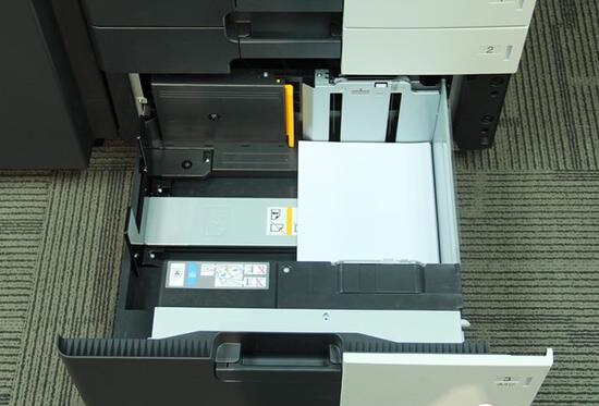 柯尼卡美能達(dá)C658標(biāo)配2個500頁紙盒和手送紙盤,選配更支持側(cè)置的大容量紙柜,最高紙張容量達(dá)到6650頁。充足的紙張容量,確保高速輸出的連續(xù)性。