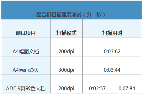 單頁掃描不論黑白還是彩色用時不到4秒,非常快。而用ADF掃描9頁彩頁僅用時7秒84,換算得到速度為113ppm,充分展現出bizhub C658風馳電掣的掃描性能。