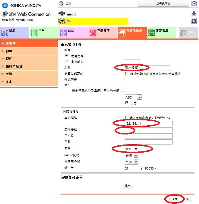 1.柯尼卡美能達復印機C226|C266 FTP 方式設置說明