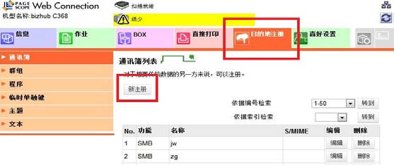 1)打開IE,在地址欄中輸入機器的IP地址進入Web Connection