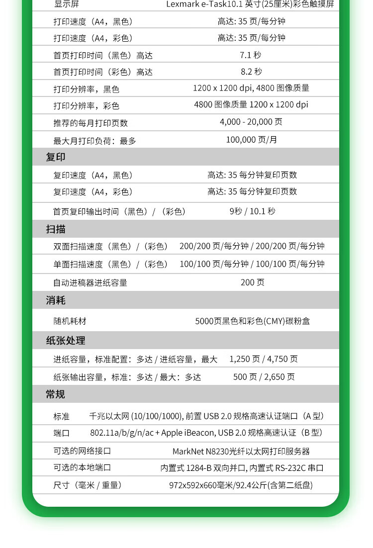 • 利盟(Lexmark)CX951se復印機價格 彩色激光多功能數碼復合機圖片參數 超耐用安全打印